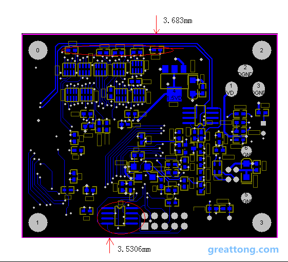 d、Mark點的顏色要和周圍PCB的顏色有明暗差異。